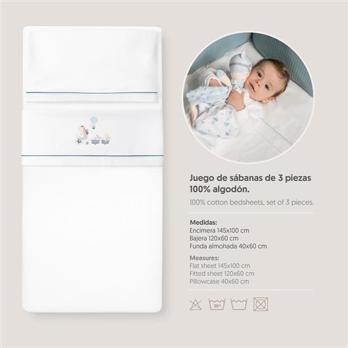 Juego de Sábanas de 3 piezas 100% algodón. Extrasuave. Lavable 30º. Confortable. Tamaño óptimo.