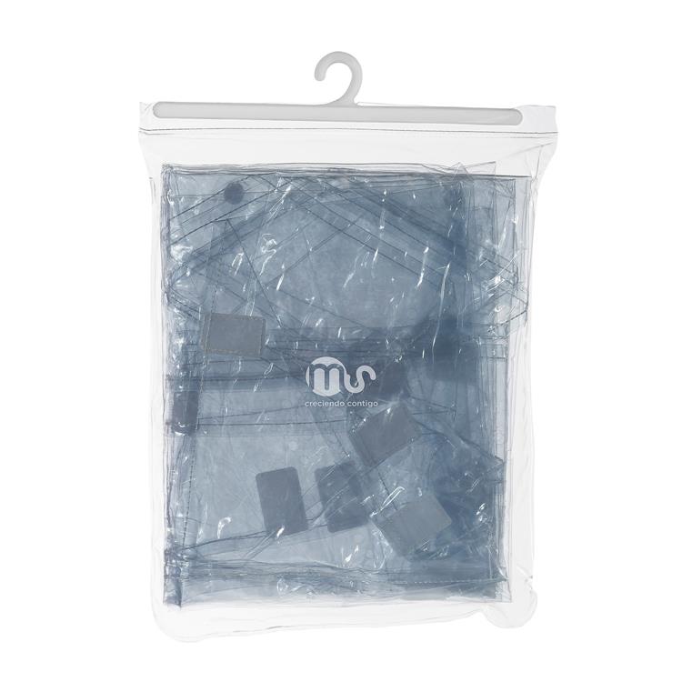 Este protector de lluvia para el carrito de tu bebé tiene una apertura frontal para abrirla abrir, se sujeta abierta y se cierra gracias a unos velcros. Es muy compacata y fácil de guardar cuando no se está usando.