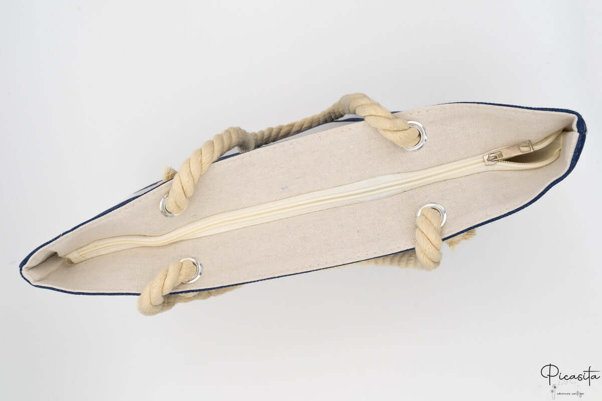 Diseñado para soportar las exigencias del entorno playero, este bolso de playa personalizado ofrece una combinación de comodidad y resistencia. Las asas, elaboradas con cuerda náutica gruesa, no solo aportan un toque marinero auténtico, sino que también son cómodas de llevar al hombro o en la mano, incluso cuando el bolso de playa personalizado va cargado.