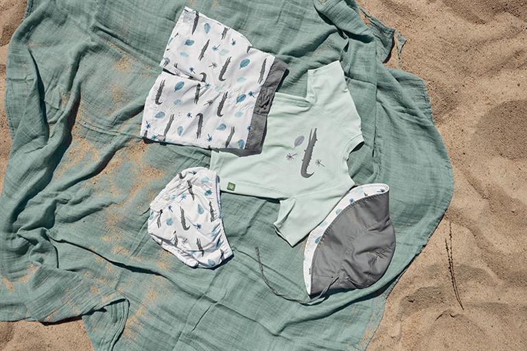 Un ajuste perfecto, materiales de alta calidad y un diseño sin costuras en el área del asiento garantizan que el pañal de baño sea cómodo de llevar en el agua y en tierra. Los protectores de erupción a juego con mangas cortas o largas completan el atuendo y garantizan una diversión sin preocupaciones en el agua.