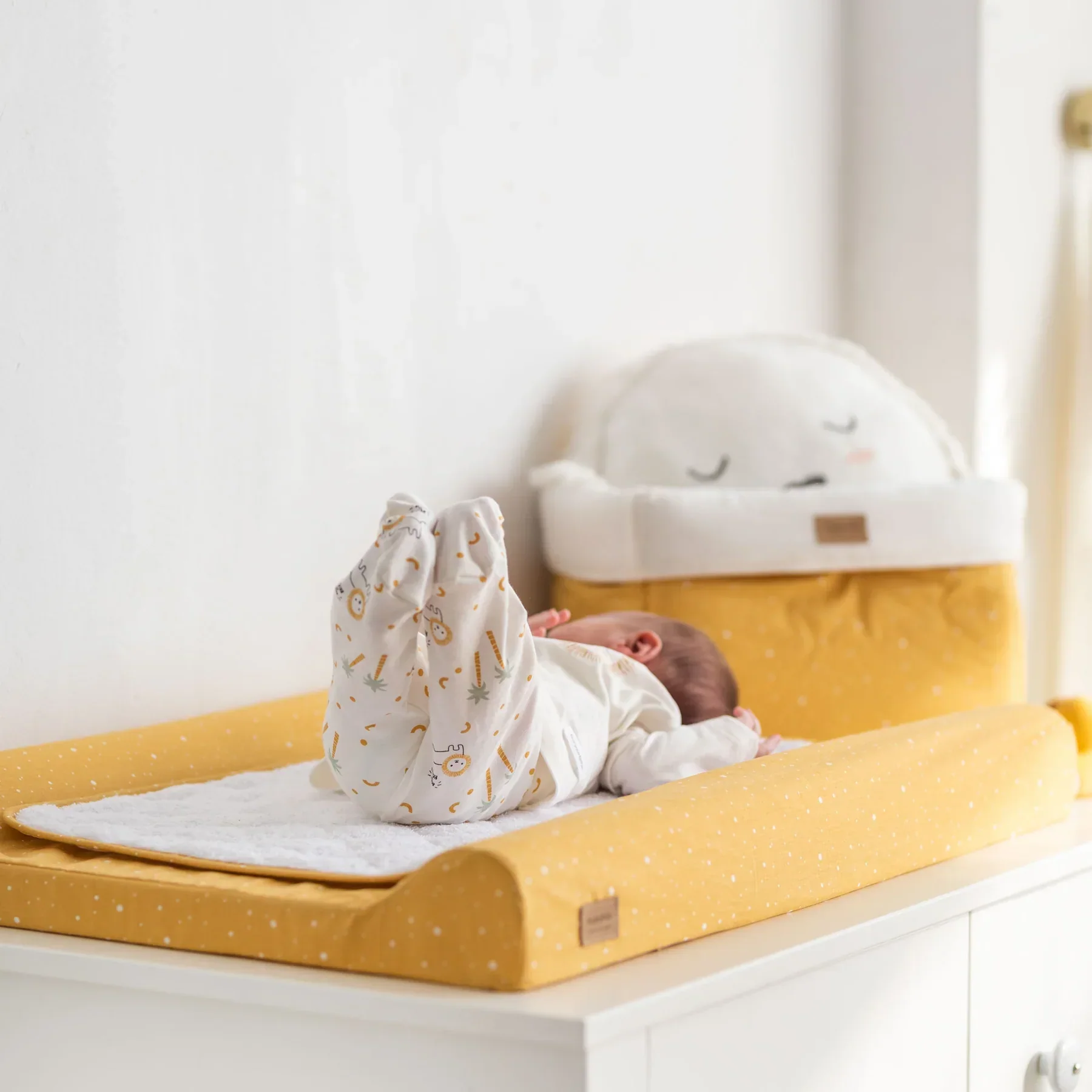 Confeccionado con nuestro tejido 100% algodón de jersey hipoalergénico. Hecho especialmente para nosotros en Portugal con hilos largos y finos, que le dan un tacto suave y garantizan su durabilidad lavado tras lavado.