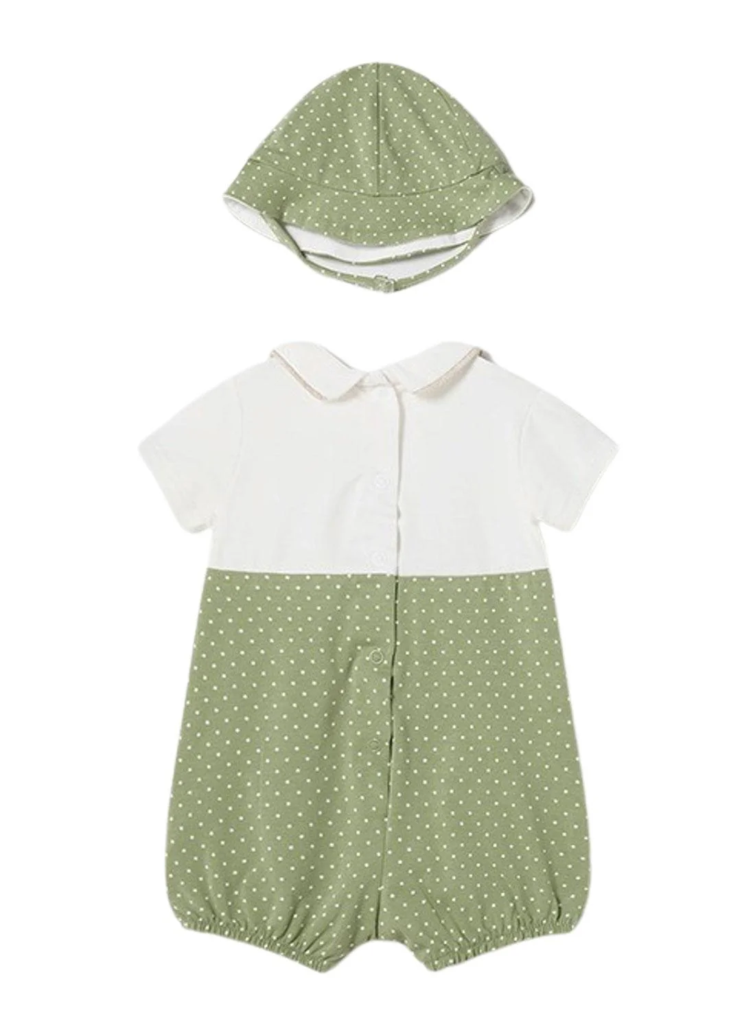 Jardinera bebé con gorro color verde eucalipto.