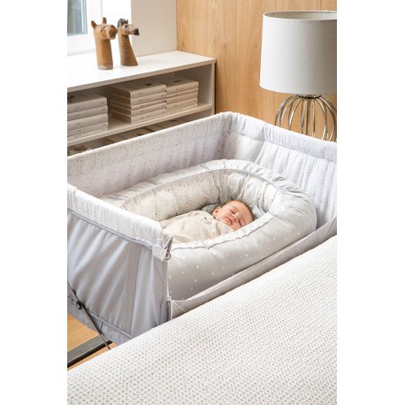 – Cuando el bebé pasa a la cuna de madera, el mismo cojín reductor le hará de protector para que las extremidades del niño no queden atrapadas entre los barrotes de la cuna de madera.