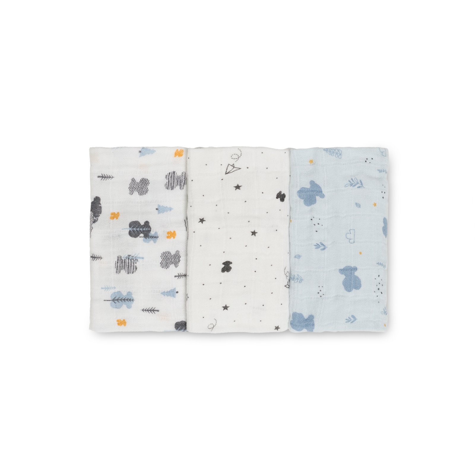 Juego de 3 muselinas TOUS Baby de suave tejido fino transpirable anti alergénica multi estampadas. Ideal para el cuidado del bebé y para diversos usos. COMPOSICIÓN: 53%Algodón 47%Viscosa. MED.: 38x38cm. Color rosa. Certificado OEKO/TEX*. Fabricado en la UE.