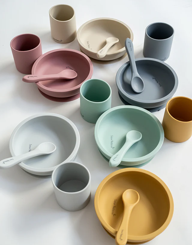 Este set de tres piezas está diseñado a la medida de tu peque. Fabricado en silicona alimentaria, un material eco-friendly.