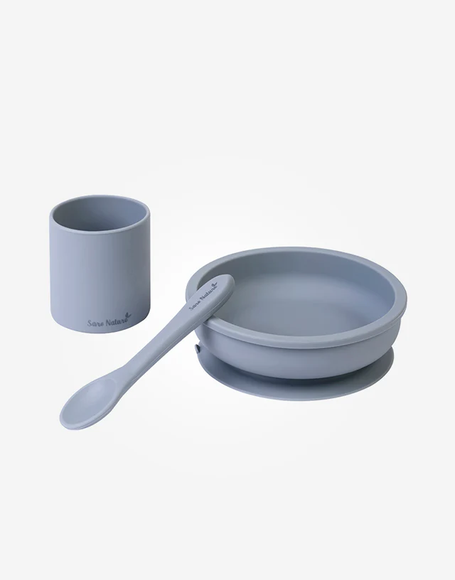 Este set de tres piezas está diseñado a la medida de tu peque. Fabricado en silicona alimentaria, un material eco-friendly.