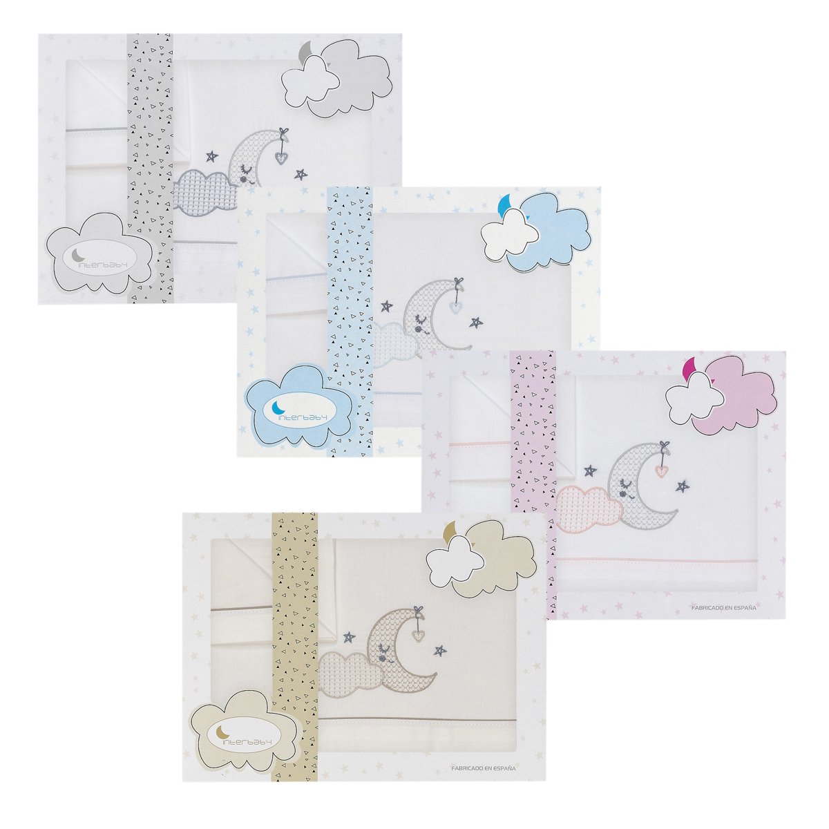 Las sábanas se presentan en una bonita caja decorativa con el frontal transparente para que puedas ver con detalle el bordado del juego de sábanas. Incluyen una sábana bajera ajustable para que quede bien sujeta al colchón del coche, una sábana encimera con un bonito estampado como detalle decorativo, y una funda para almohada.